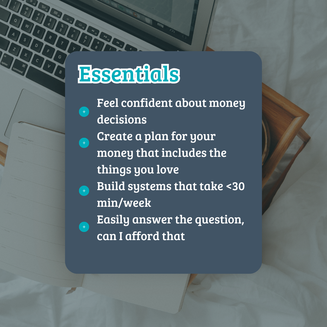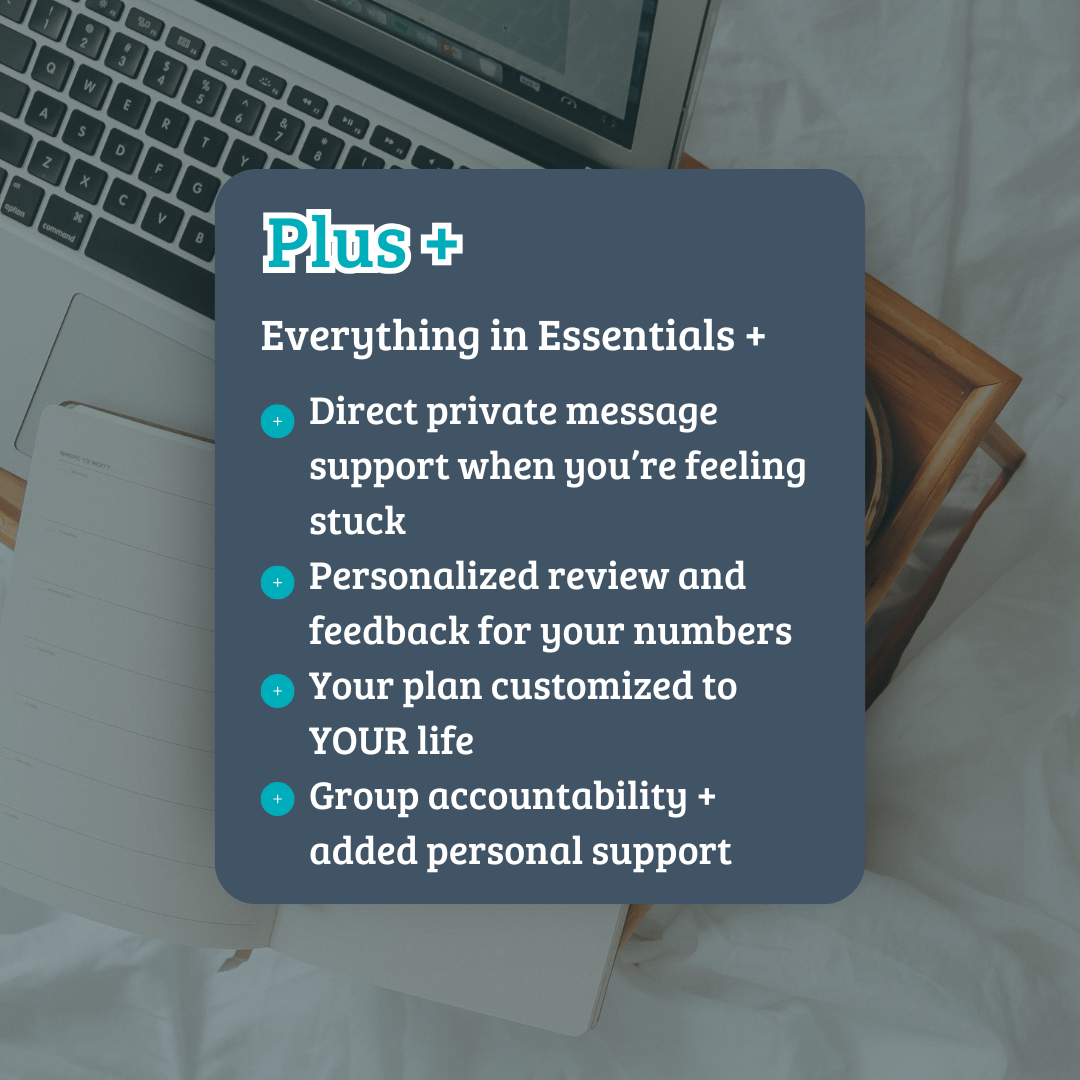 Plus: Everything in Essentials, plus access to message me directly to ask questions between calls and get personalized feedback on your money setup